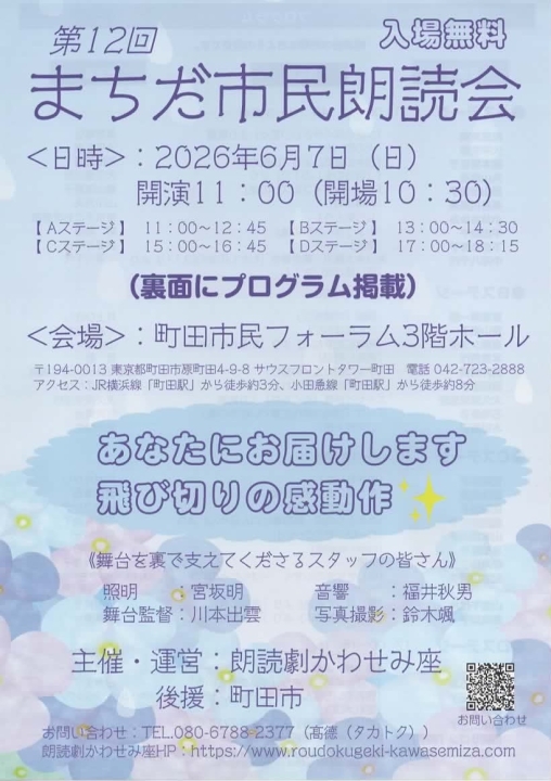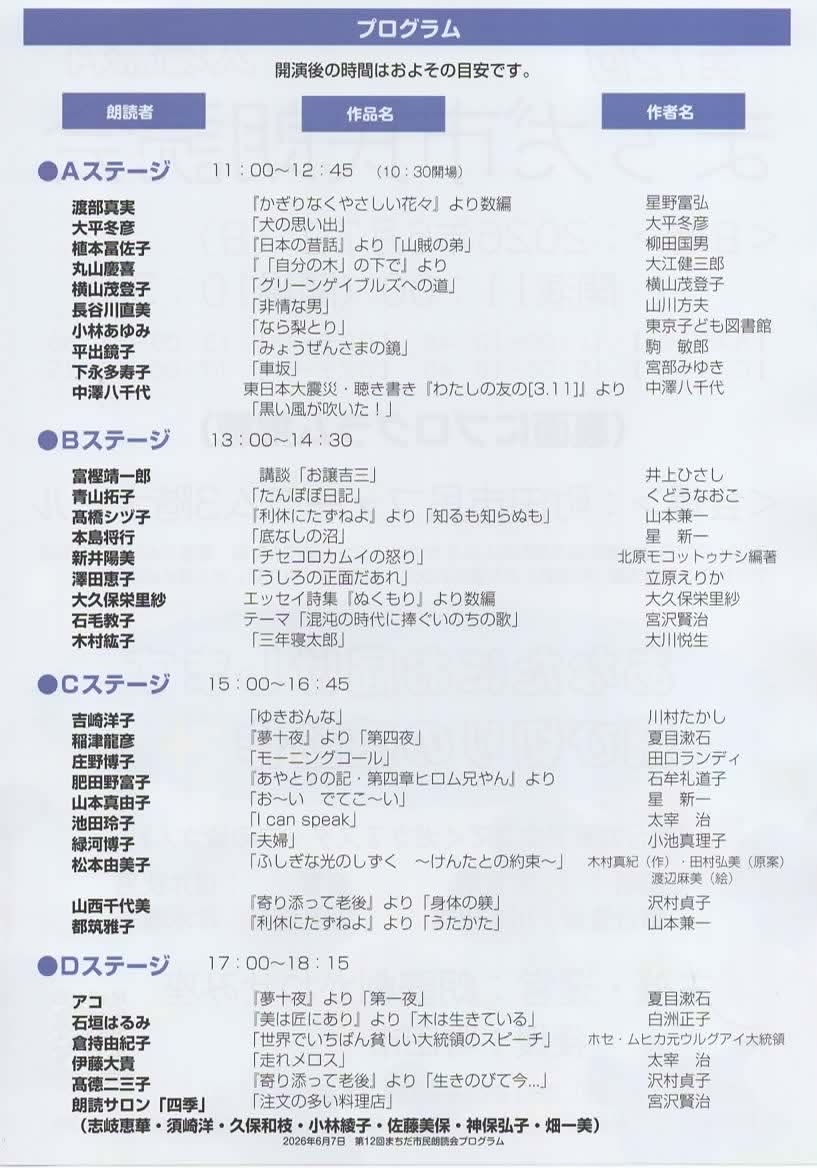 ☆第12回「まちだ市民朗読会」参加者募集中☆(2026/6/7開催)