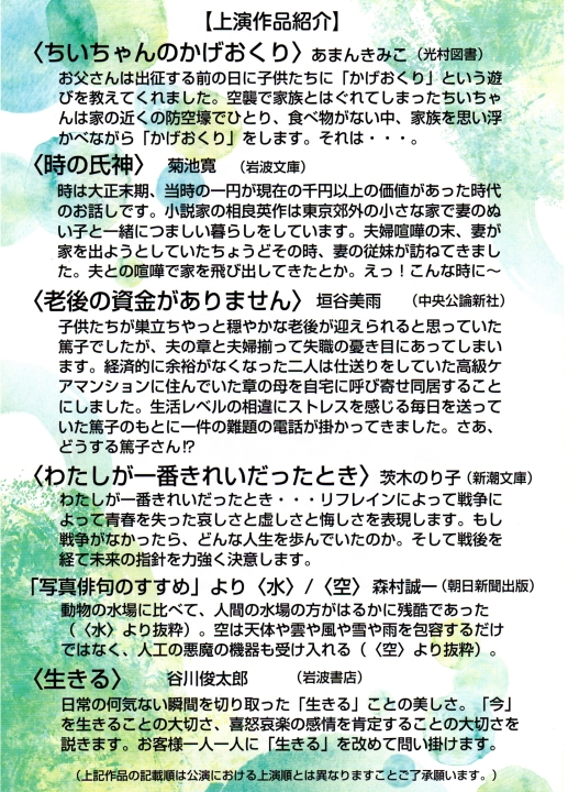 ★第9回朗読劇かわせみ座 秋の定期公演★(2023/11/8)